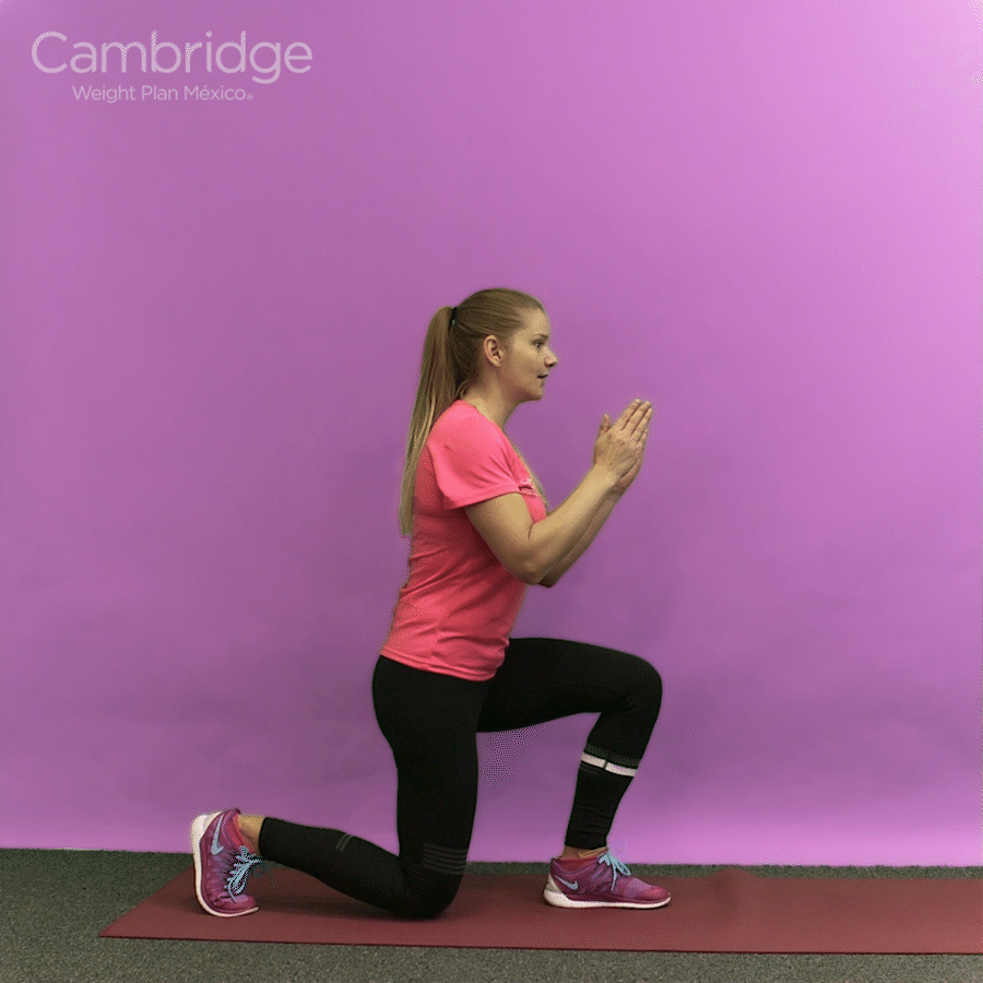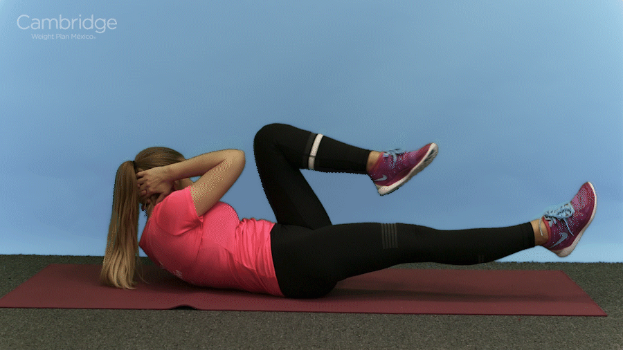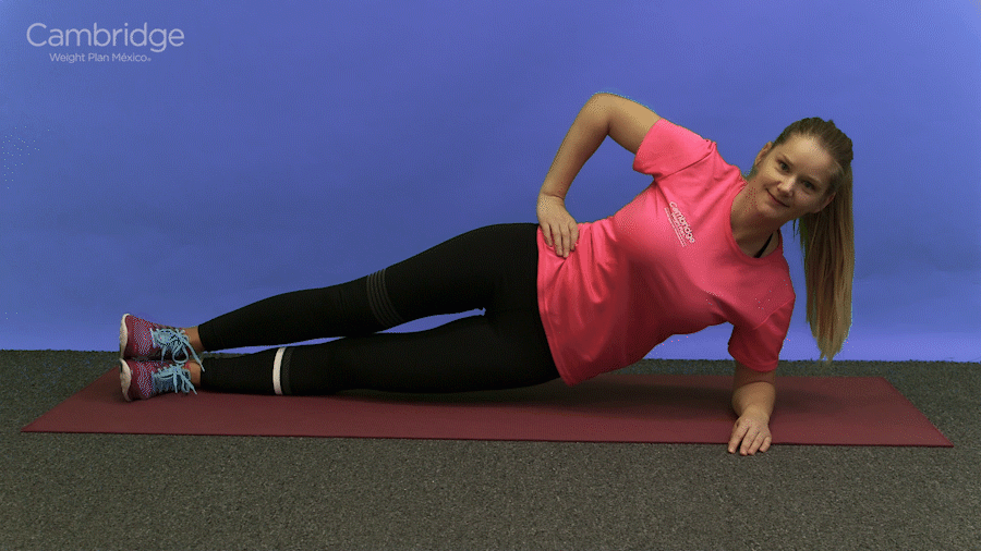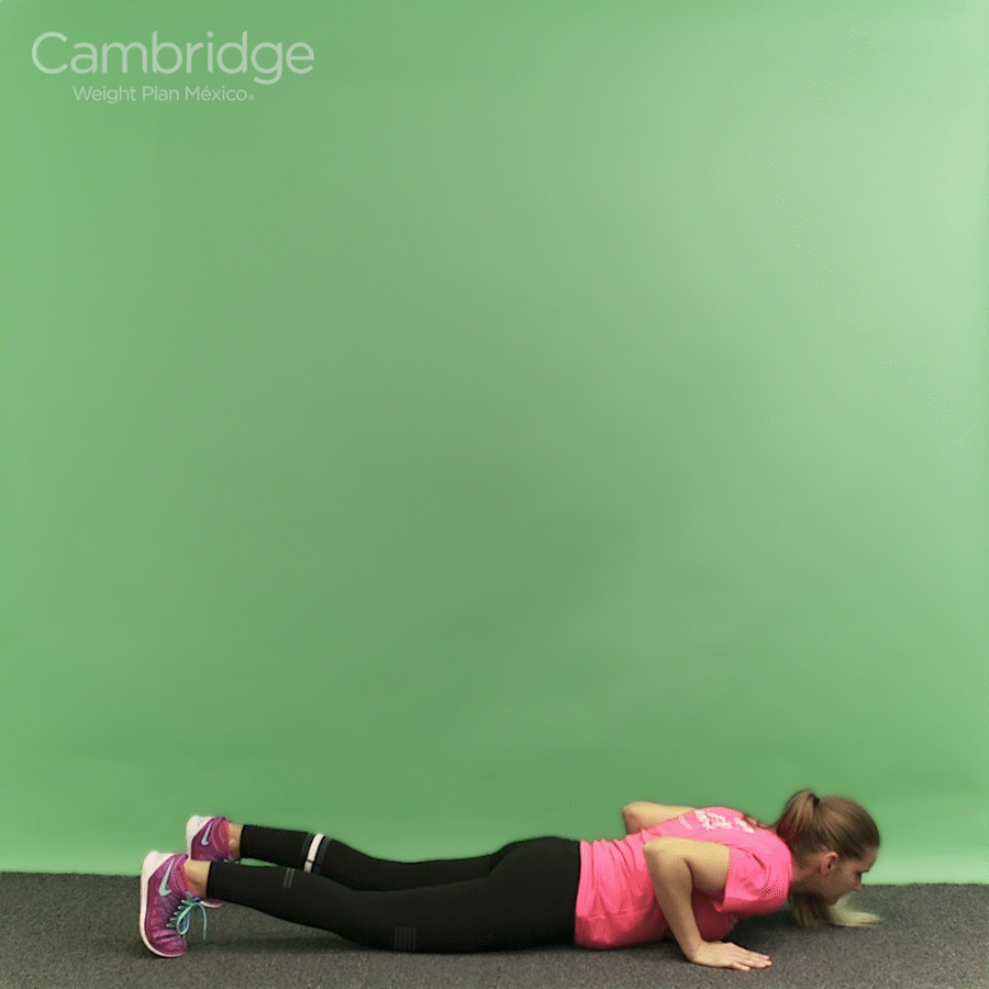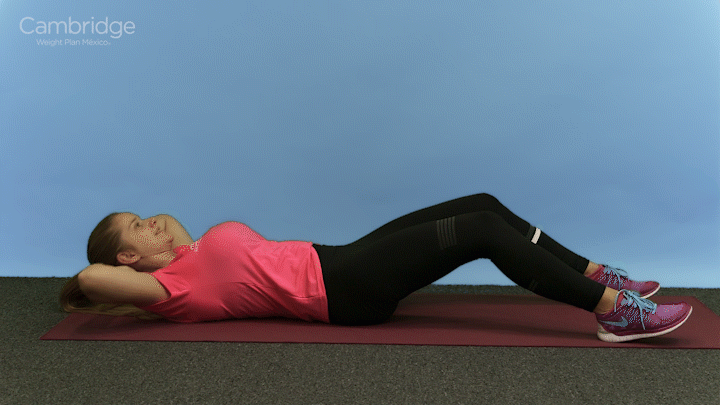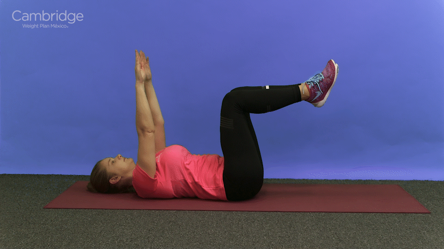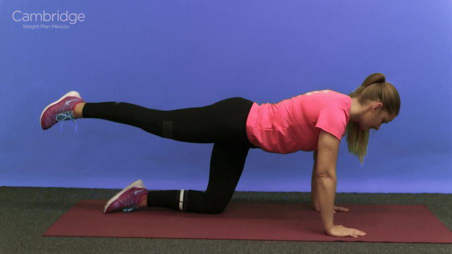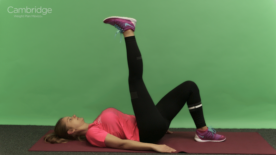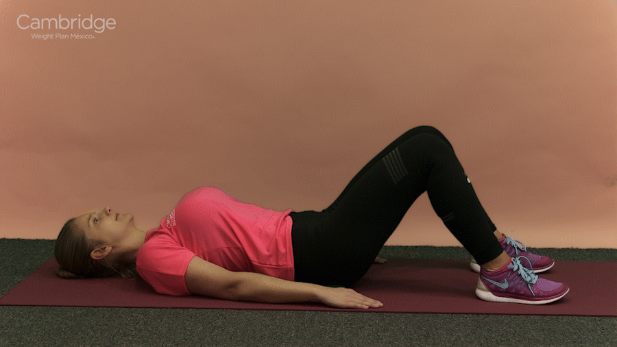 En esa posición levanta tu cadera del suelo para formar un ángulo recto y baja otra vez.