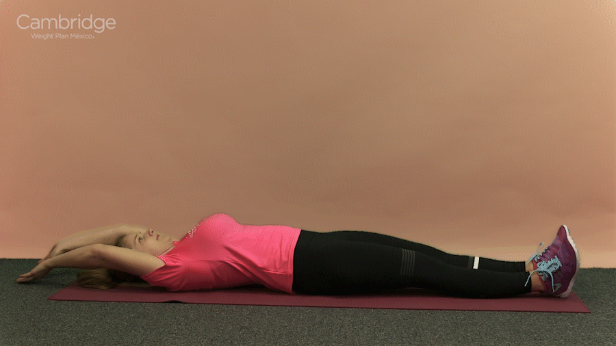 Comienza acostado boca arriba, con tus brazos al lado, tus rodillas flexionadas y los talones a unos centímetros de tus glúteos. Tus pies deben de estar separados a la altura de tu cadera.