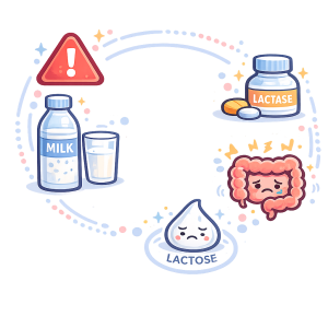 La intolerancia a la lactosa es la incapacidad para digerir la lactosa (el azúcar de la leche) y es causada por una deficiencia de lactasa, una enzima liberada por el intestino delgado, la cual permite que el azúcar de la leche sea absorbida por el torrente sanguíneo.